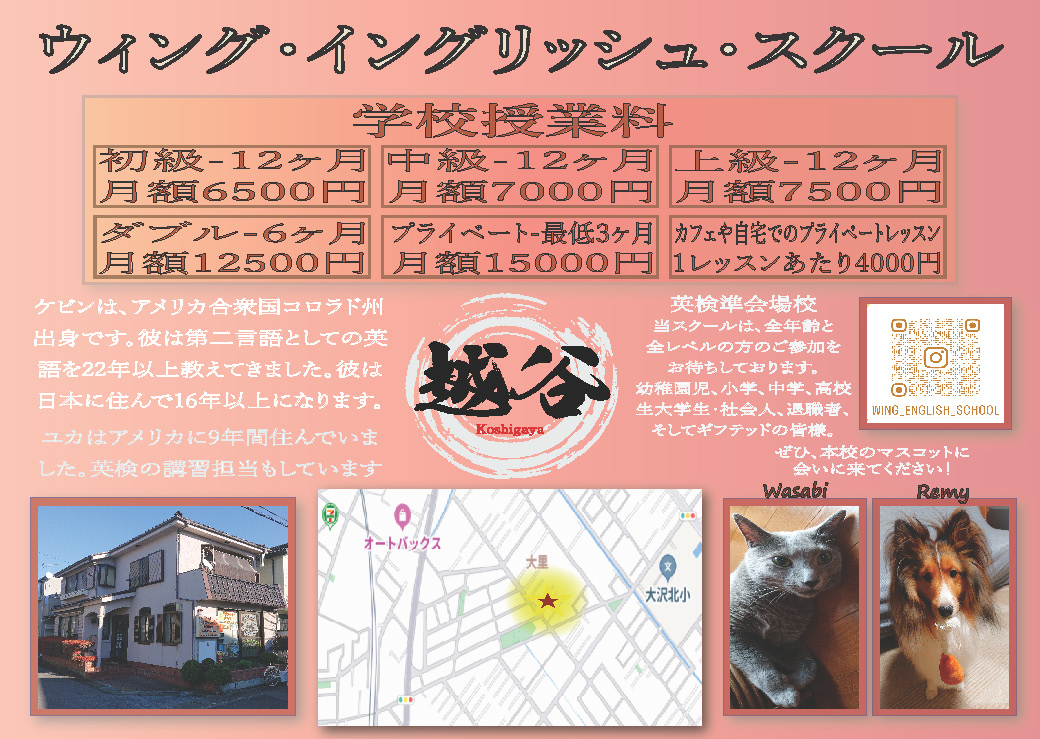 ・元ウィング生徒(卒業生含む)入会金無料 ・低所得者認定のご家族様ご相談ください ・年間受講生(中学生以上)は、特別プレゼントがあります。 全てのウィング生徒は、傷害保険が付帯されてます。 |